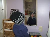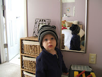 How can I not help but blog about this!? And how can you not help but think what a little hardcore heartthrob this guy is!! I was gone when Tasha took this, but apparently Zeke was walking around all day patting his head, wearing my beanie and saying, “Da-da, da-da!” Reminds me of that old Harry Chapin song, Cats in the Cradle. No pressure, though! No pressure!